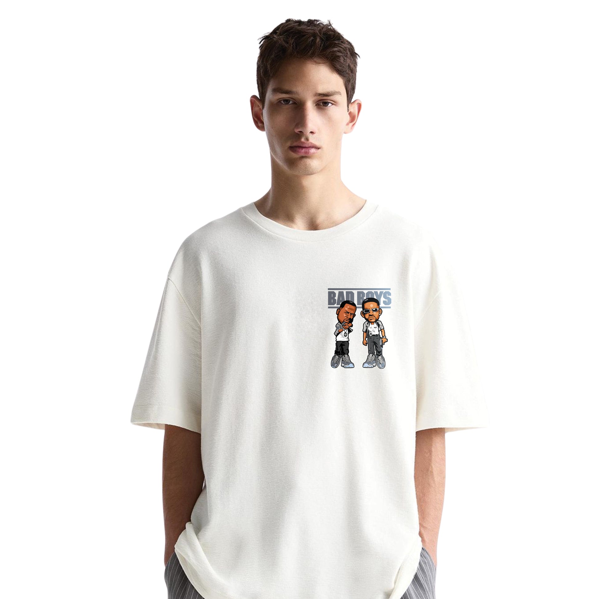 Refresh your casual style with this men’s white oversized T-shirt featuring an exclusive “Bad Boys” cartoon graphic on the front. Perfect for fans of iconic buddy films and playful streetwear, this tee blends soft premium cotton with a relaxed fit for all-day comfort. The unique cartoon design and “Bad Boys” branding add bold personality to your wardrobe, making it great for daily wear, gifting, or showcasing pop culture flair.