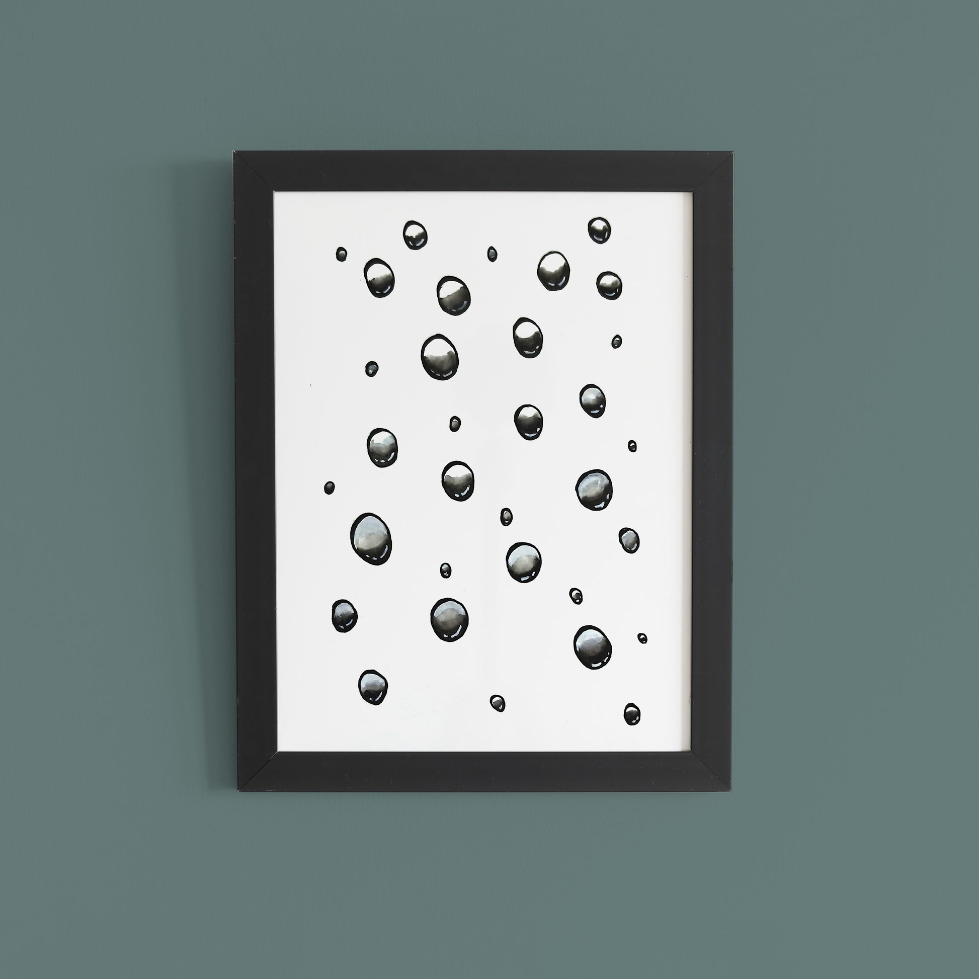 Capture the peaceful rhythm of nature with "Raindrop Symphony," a striking framed print featuring scattered water droplets across a crisp white background. This minimalist artwork harnesses the timeless elegance of pure shapes and subtle reflections, infusing contemporary rooms with calm and clarity. Perfect for living spaces, bedrooms, bathrooms, or offices, it complements any modern aesthetic while sparking conversations about nature, simplicity, and design. Crafted with premium materials, this print makes an intriguing accent for design lovers and those seeking tranquil, abstract decor.