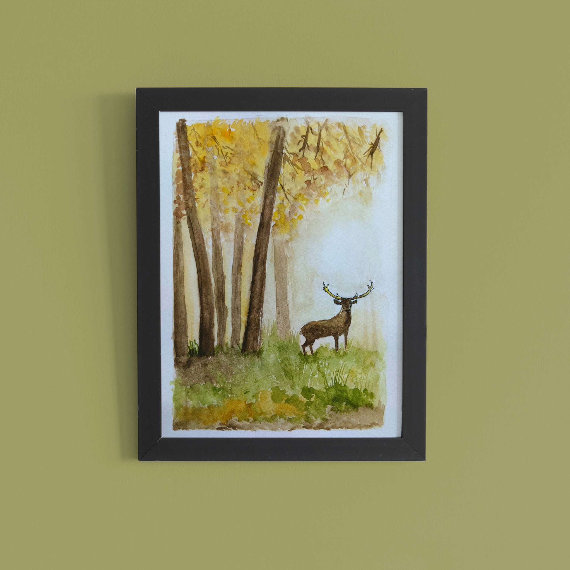 Bring the tranquil charm of the woods into your home with this Autumn Forest Deer Watercolor Painting. This artwork captures a serene moment where a lone deer stands gracefully among tall trees bathed in golden light. The soft brushwork and natural hues evoke peace, reflection, and a deep connection with nature.